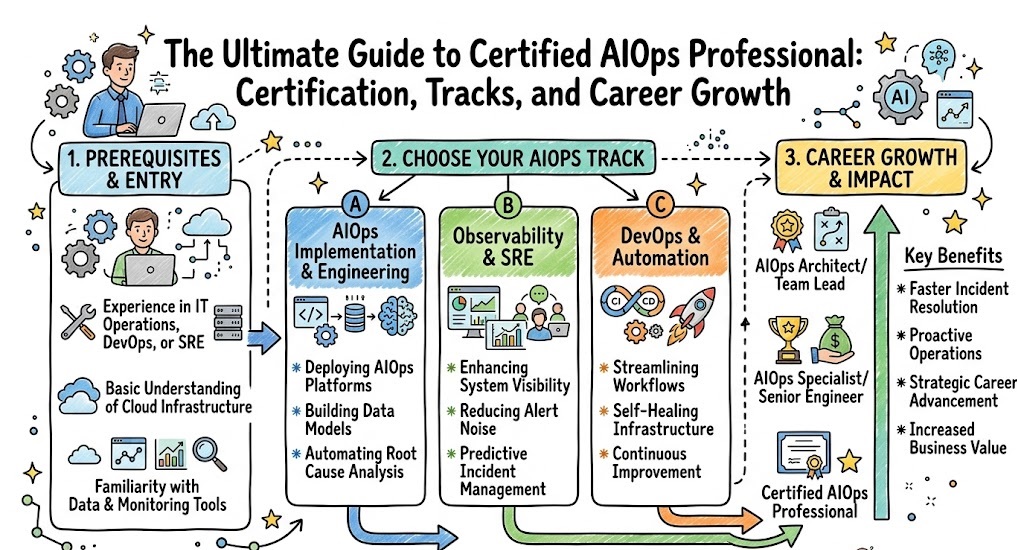 Whether you are working in DevOps, cloud-native environments, or platform engineering, understanding AIOps is no longer optional. This guide helps professionals navigate the learning curve and make informed career decisions. By following the roadmap provided by AIOps School, you can transition from manual monitoring to intelligent, self-healing infrastructure.